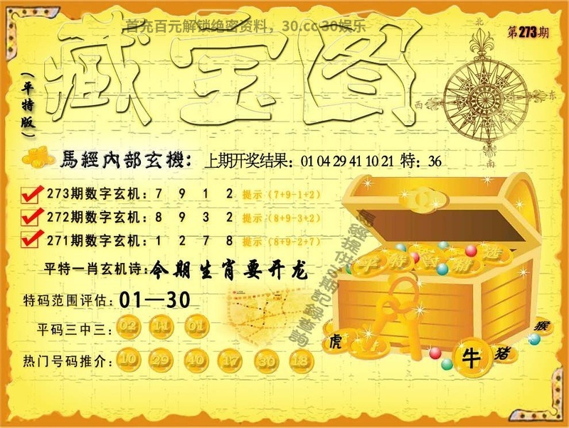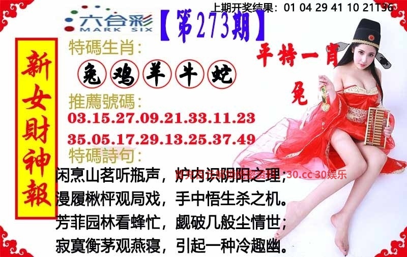 273期:⑥肖 | 龙蛇鸡虎马兔 | 开:虎04中 |